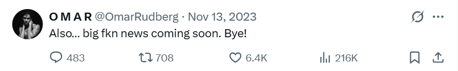Omar's socials November 2023
