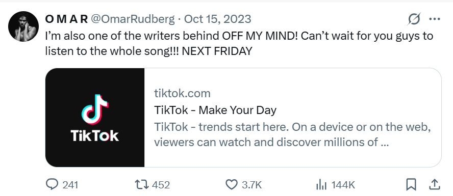 Omar's socials October 2023